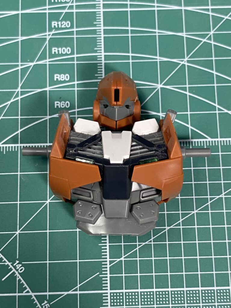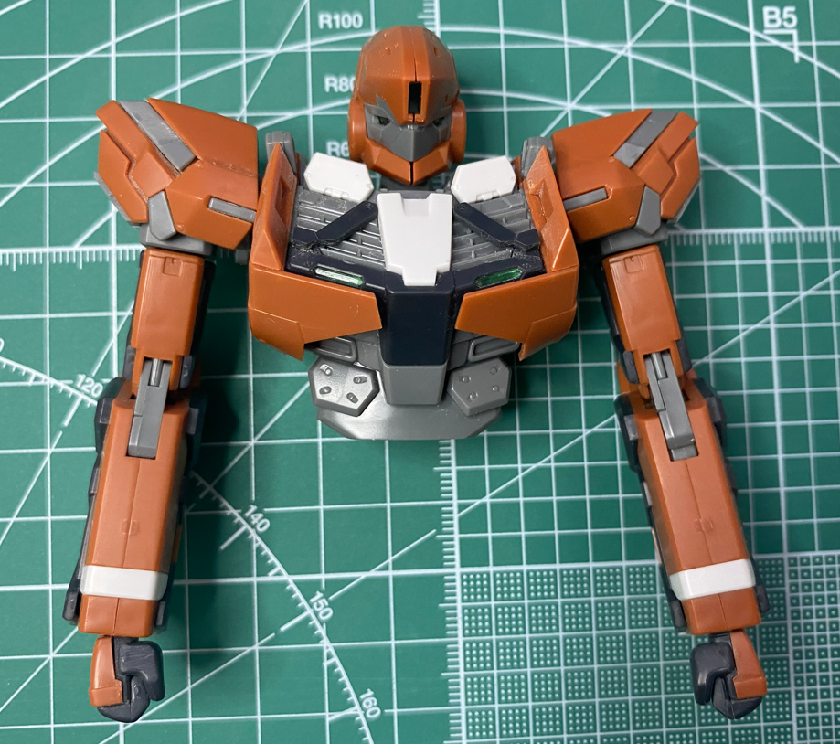 胴体と頭は色分けがされており、素組でも見栄えがあります。またモールドも深いため墨入れすればさらにかっこよく仕上がると思います。上の写真の組み部分の台形のグレーのパーツはすぐ取れるのでなくす可能性があるので、接着したほうがいいですね。