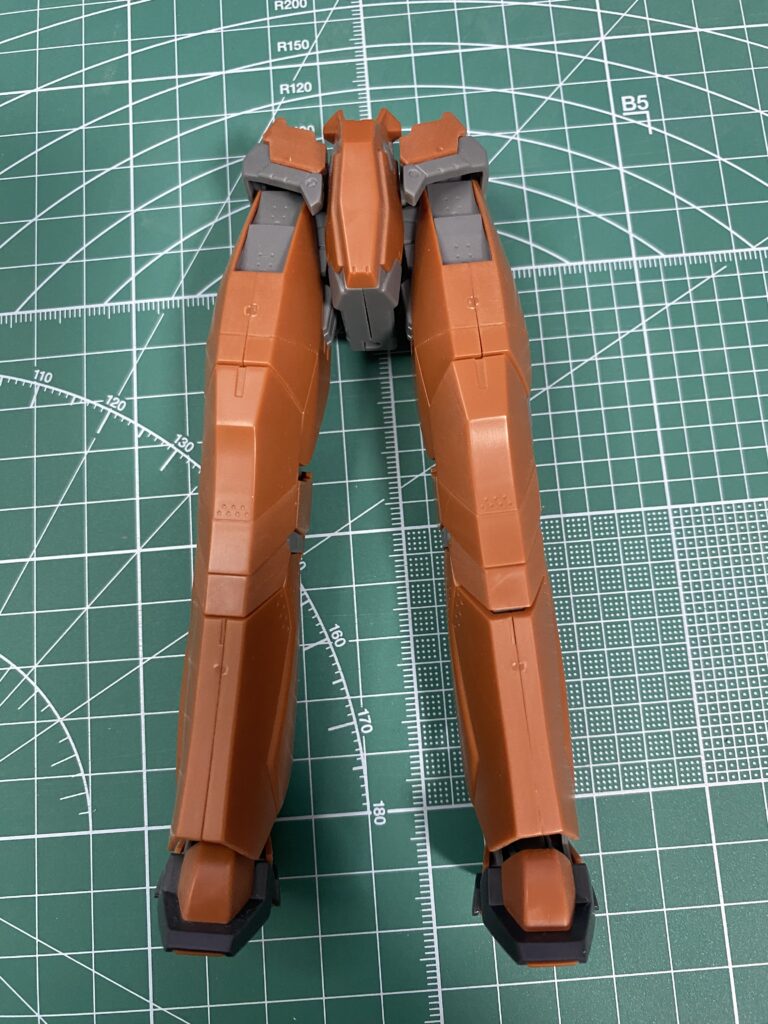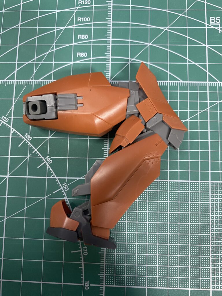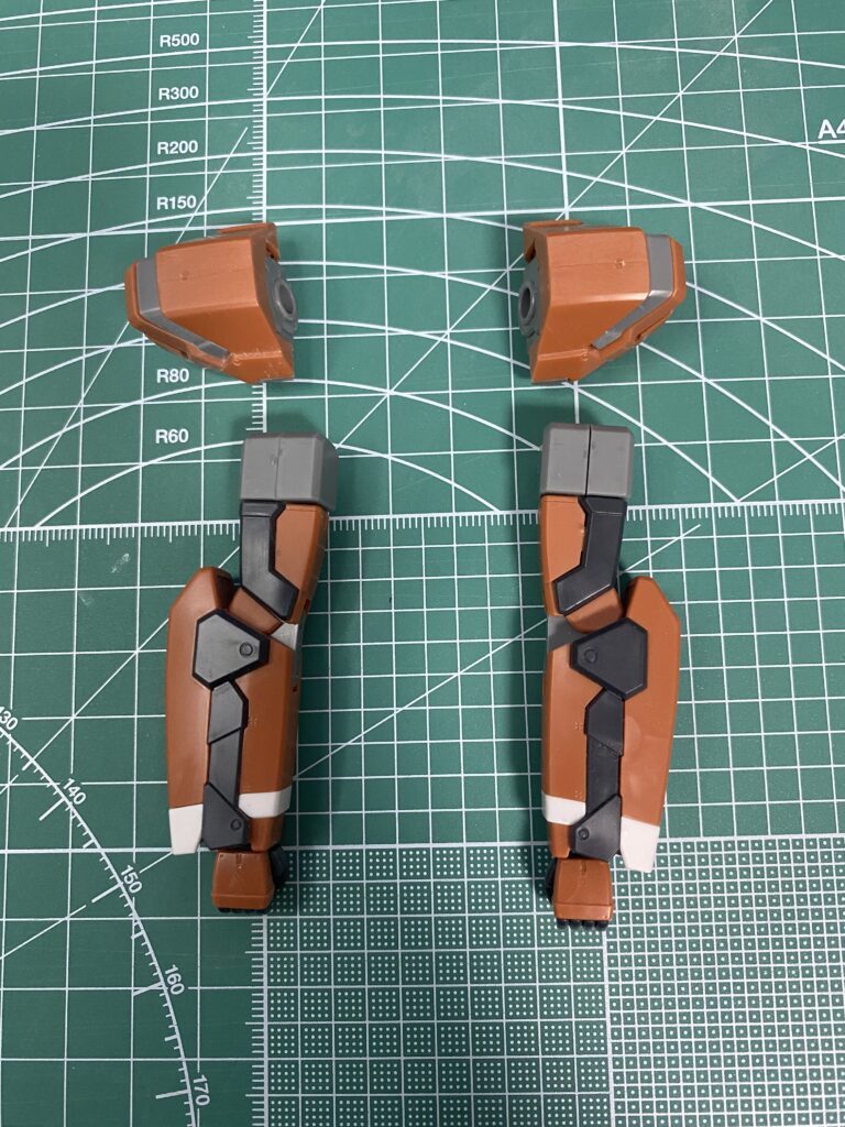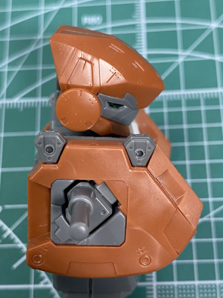 腕部分は突起物もなく全体的に四角く収まっているデザインです。パーツも大きい最中構造に小さいパーツを付ける形で色分けを成立されている感じです。
